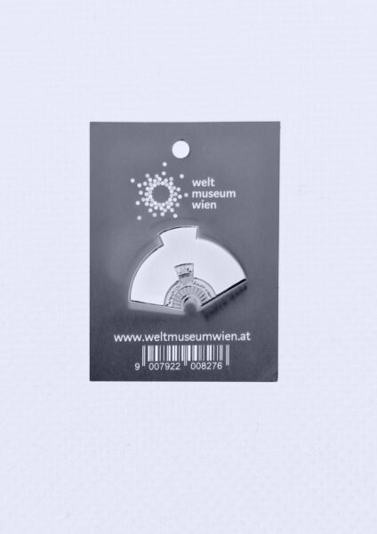 Decorate your jacket or bag with this colorful pin, which is inspired by a very special object from the collection of the Weltmuseum Wien. The magnificient [sic], Aztec Quetzal feathered headdress is the only existing one and consist [sic] of hundreds of long Quetzal-feathers and more than thousand golden ornaments. Quetzal feathered headdress, Mexico, Aztec, early 16th cent., inv. no. 10.402” [2]