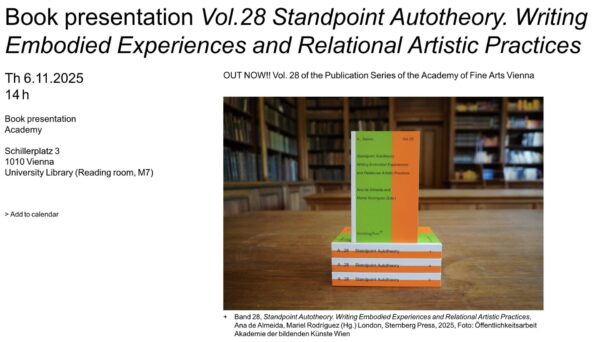 Standpoint Autotheory encompasses a multitude of manifestations of radically self-reflexive research attitudes. It traces research based artistic practices through twelve contributions that propose a performative integration of the personal within the production of theory and explore the entanglements of subjectivity with criticality aimed at social transformation by questioning dominant epistemologies.